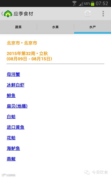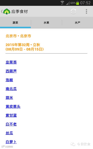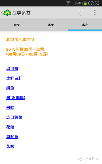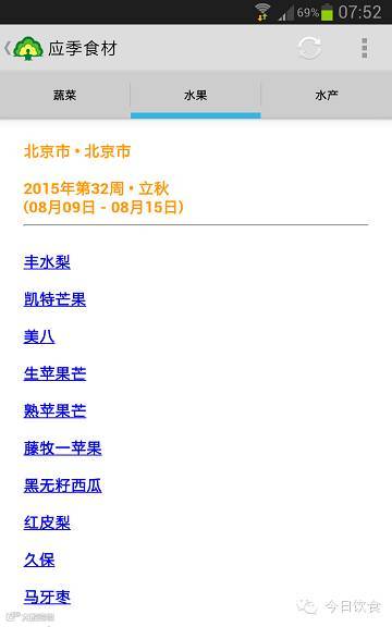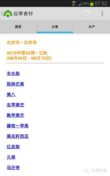 今日饮食是基于大数据的应季食材推荐具有实用,新颖,和首创性,目前在市场上没有类似产品。分析结果数据也可提供API方式调用,传入地理位置信息,返回特定地理区域当前的应季食材列表。
