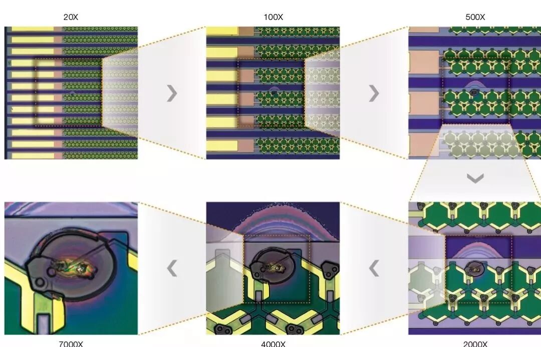 ▲20–7,000X 放大倍率下的晶圆图像对比