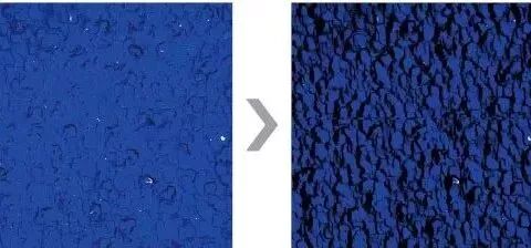 ▲太阳能电池图像对比(左图:明场观察,右图:偏光观察)
