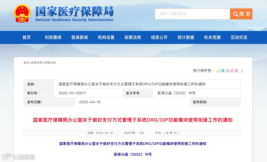 国家医疗保障局办公室关于做好支付方式管理子系统DRG/DIP功能模块使用衔接工作的通知