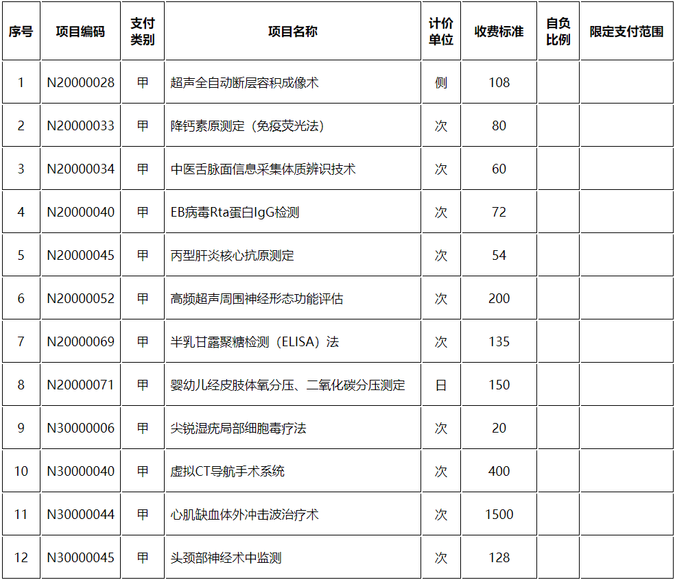 将“超声全自动断层容积成像术”等48项医疗服务项目纳入本市基本医疗保险支付范围,并调整部分项目价格,具体见附件。
