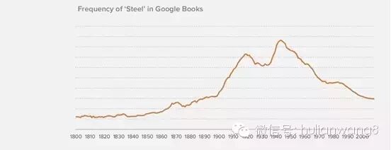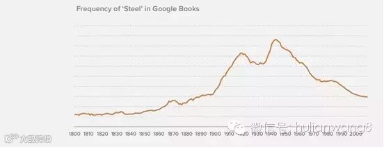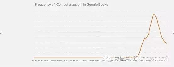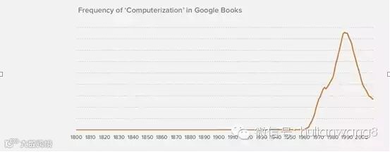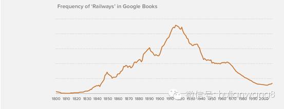 另一重要事实:当一项技术被充分普及,它就被社会“内化”成理所当然的一部分,人们也就不再谈论它。以下几张图,显示了“铁路”、“钢铁”、“计算机化”等技术词汇在 Google Books 出现的频率: