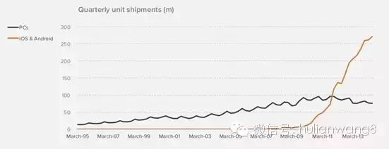 全球有 20 亿人,平均每 2 年买一台移动设备;全球有 16 亿人,平均每 5 年买一台 PC。