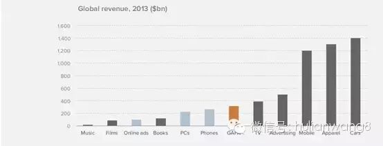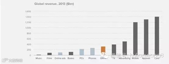1. 以下是各行业在 2013 年收入情况。其中,汽车业达到 14000 亿美金,服装业达到 13000 亿美金。