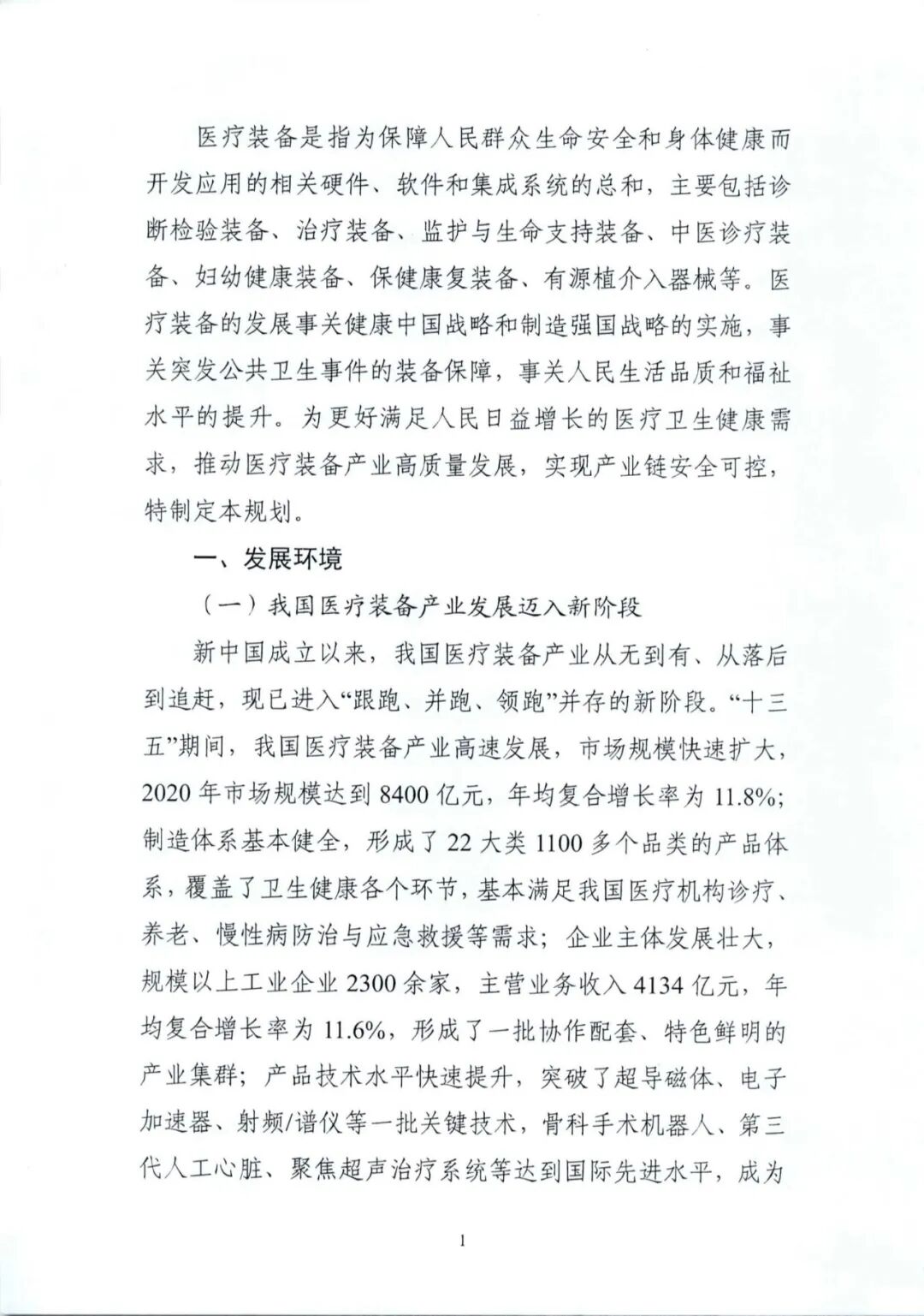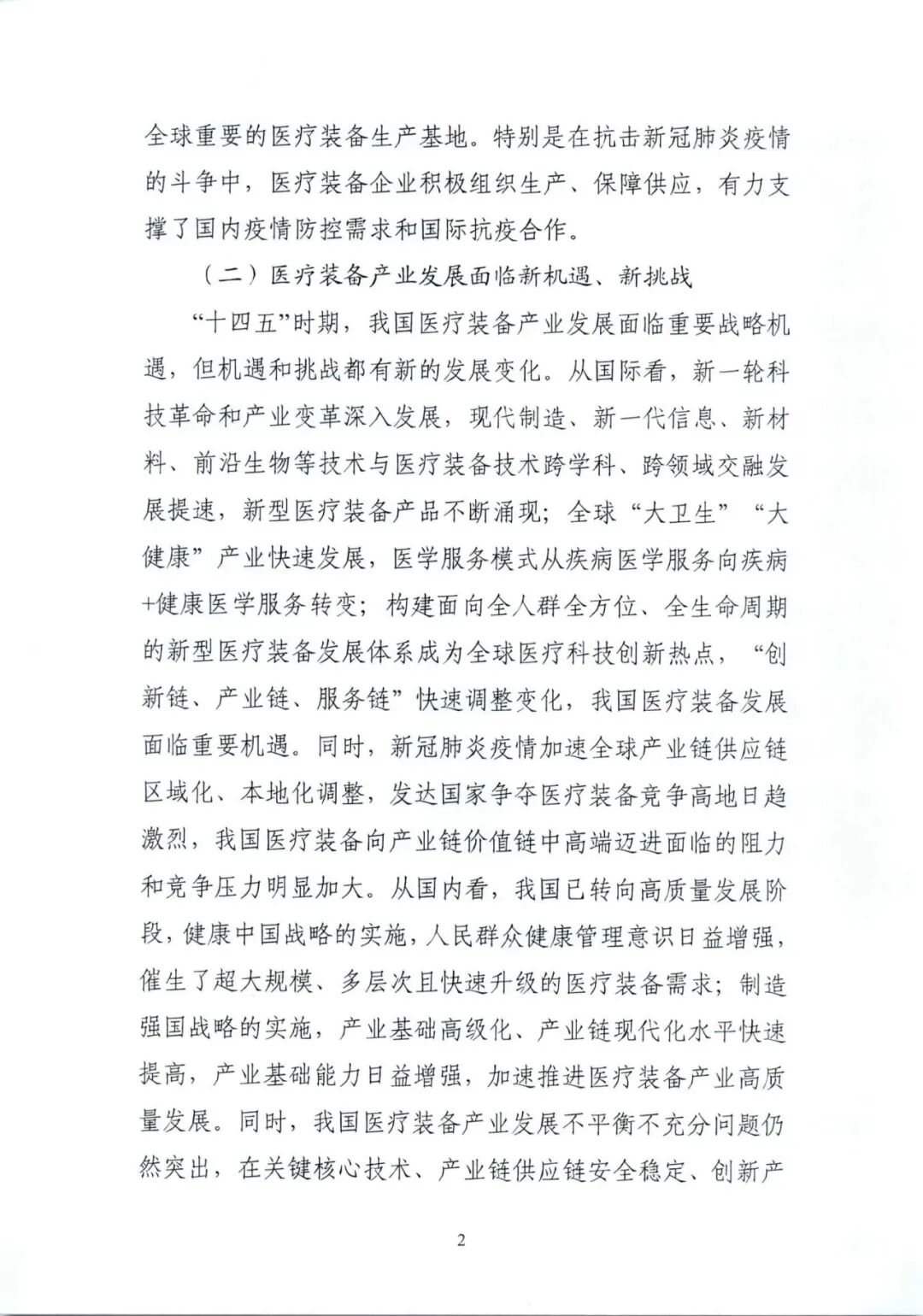 “十四五”医疗装备产业发展规划