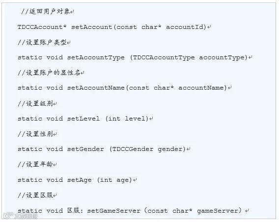 下面我们将通过TalkingDataGame Analytics在iOS平台的数据统计接口设计的为例,来描述具体的具体设计方法,其中涉及的标准接口有6个。