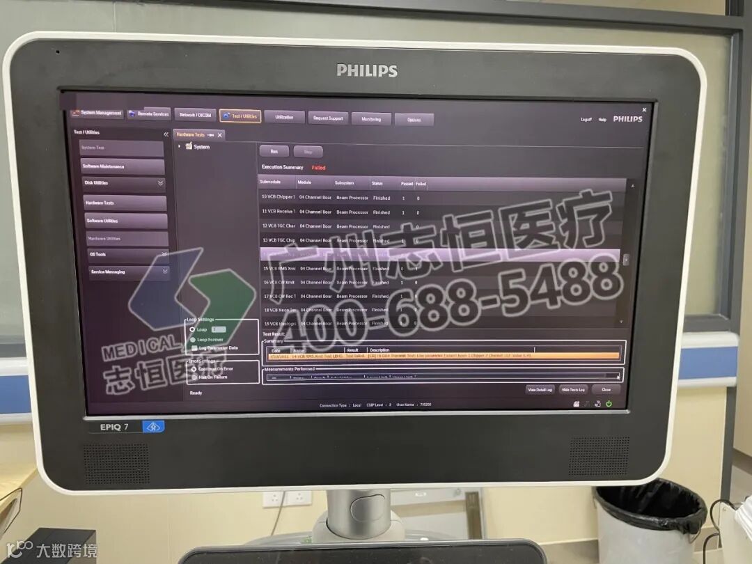4、进入机器后台登录后进行自检,自检结果为CB通道板存在故障,即前端ACQ板故障。