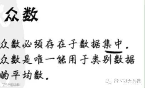 众数不仅能够用于数值型数据,还能应用类别数据。事实上,众数是唯一能够用于类别数据的平均数。