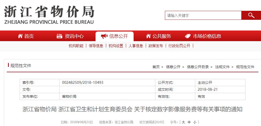 8月21日,浙江省物价局、卫计委联合发布《关于核定数字影像服务费等有关事项的通知》(以下简称《通知》)。