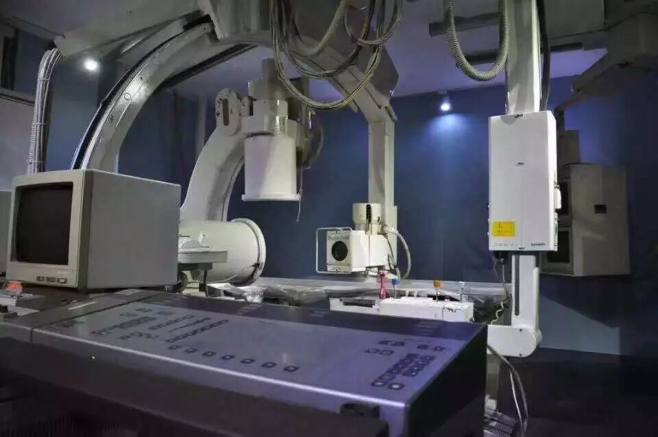 这台体形庞大的仪器因为有两个C型臂,简称“双C”。相应的, 它也具有两套成像装置。两套成像装置的优势在于,能够获得三维立体的图像,使医生能够获取更多的病灶信息。这台仪器主要用于“介入治疗”。