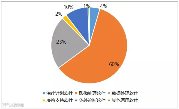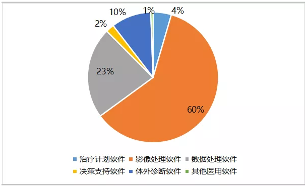 从细分领域来看,截至2020年底,国内已有的医用软件注册证共1123个,其中有效的注册证为730个,各品类分布的情况如下:治疗计划软件33件,影像处理软件441件,数据处理软件165件,决策支持软件15件,体外诊断类软件72件,其他软件4件。