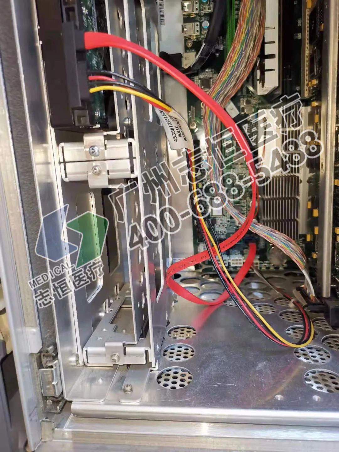 3.接下来更换pc。飞利浦IU Elite的pc可以直接拉出然后扭下两边滑轨固定pc机箱的螺丝,pc即可轻轻松松的被卸下。不过值得注意的是,在卸下pc之前,一定要注意pc上的各种线路连接方式,最好逐一拍照留个记录,这样在装pc时就不会出现不知如何接线的困惑,所谓有备无患。