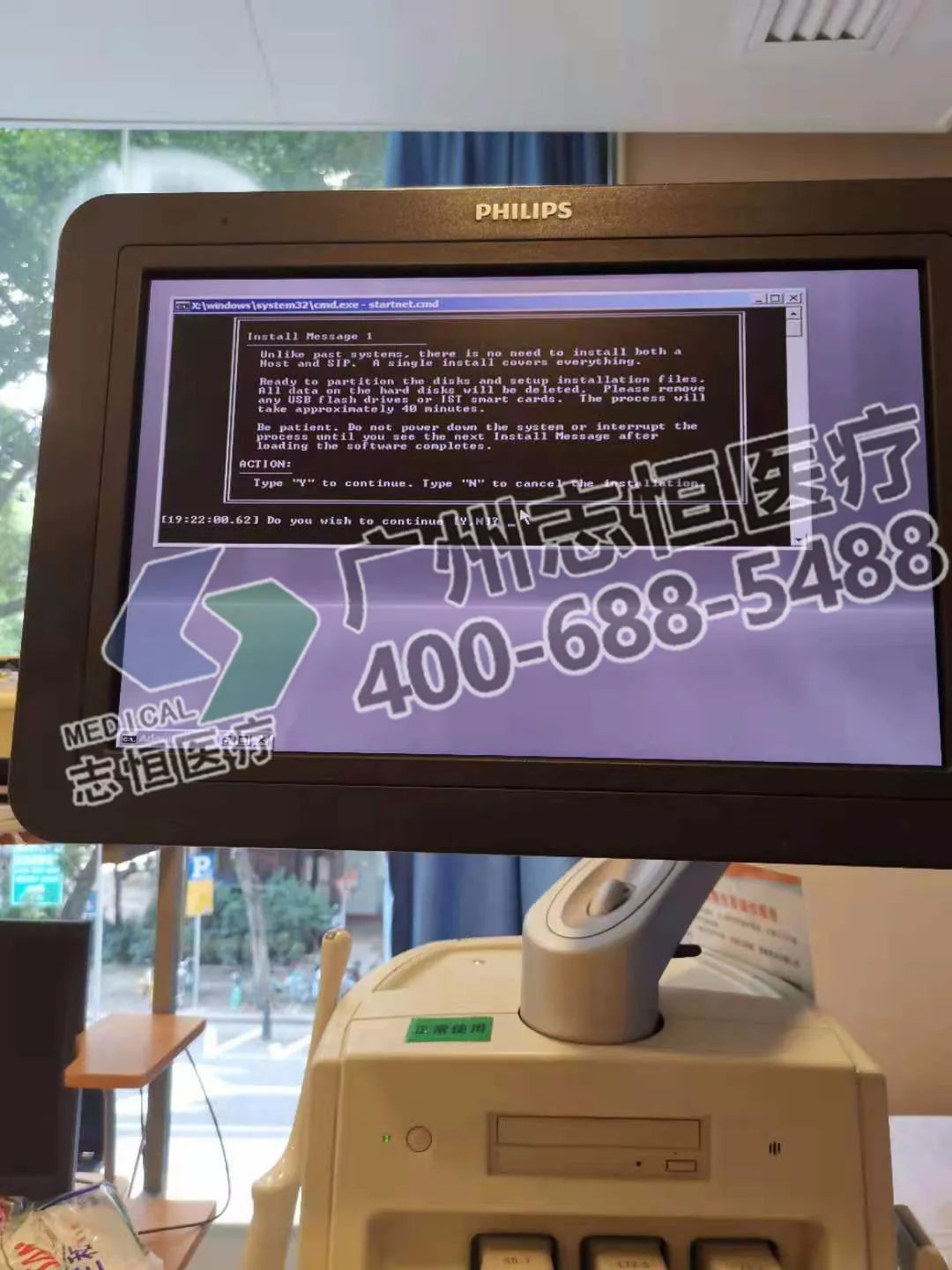 7.放入应用光盘,机器会自动读取光盘信息,直到提示按“Y”以确认,键盘输入“Y”,继续等待。