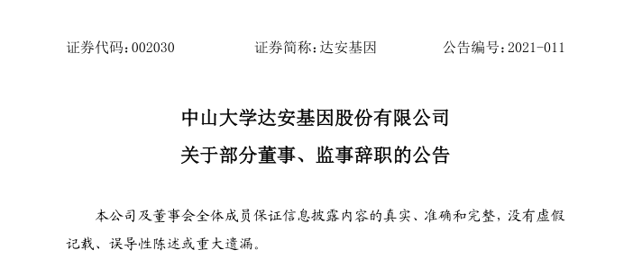 中山大学达安基因股份有限公司董事会于近日收到董事卢凯旋先生递交的书面辞职报告,卢凯旋先生因工作原因申请辞去公司董事及薪酬与考核委员会委员职务。将不再担任公司任何职务。