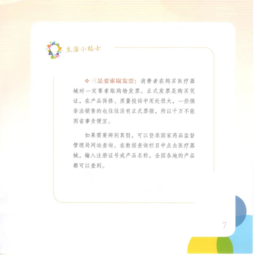 选购时可检查产品包装是否印有注册证编号、生产企业名称及生产许可证号、备案记号等信息。可凭以上相关信息登录国家药品监督管理局官网(https://www.nmpa.gov.cn),点击“医疗器械”栏目查询,一旦发现问题产品应及时向监管部门投诉举报。