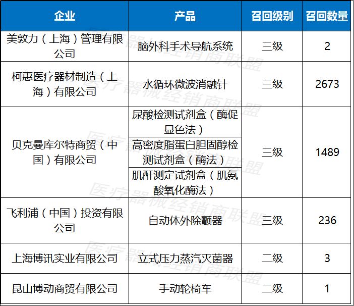 其中包括美敦力、飞利浦、贝克曼等大牌械企,涉及召回产品共计5035台,其中飞利浦召回的设备类型最多,共计8种,涉及产品628台。