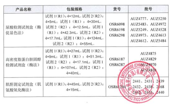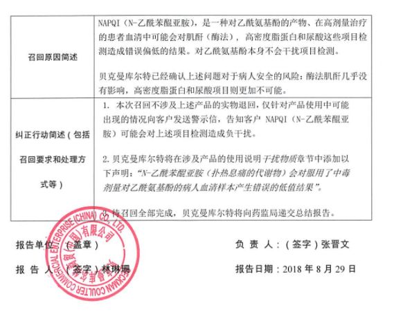 贝克曼库尔特商贸(中国)有限公司对尿酸检测试剂盒(酶促显色法)等产品主动召回