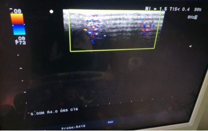 ALOKA α10机器超声成像过程中回声区有2道亮道干扰,使用彩色多普勒成像功能时尤为明显。