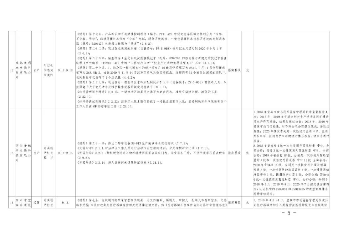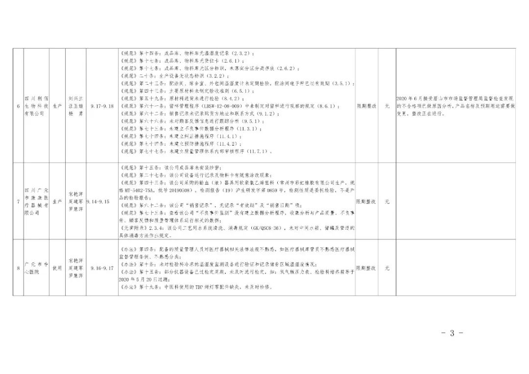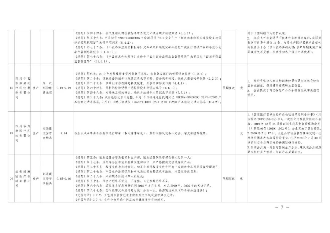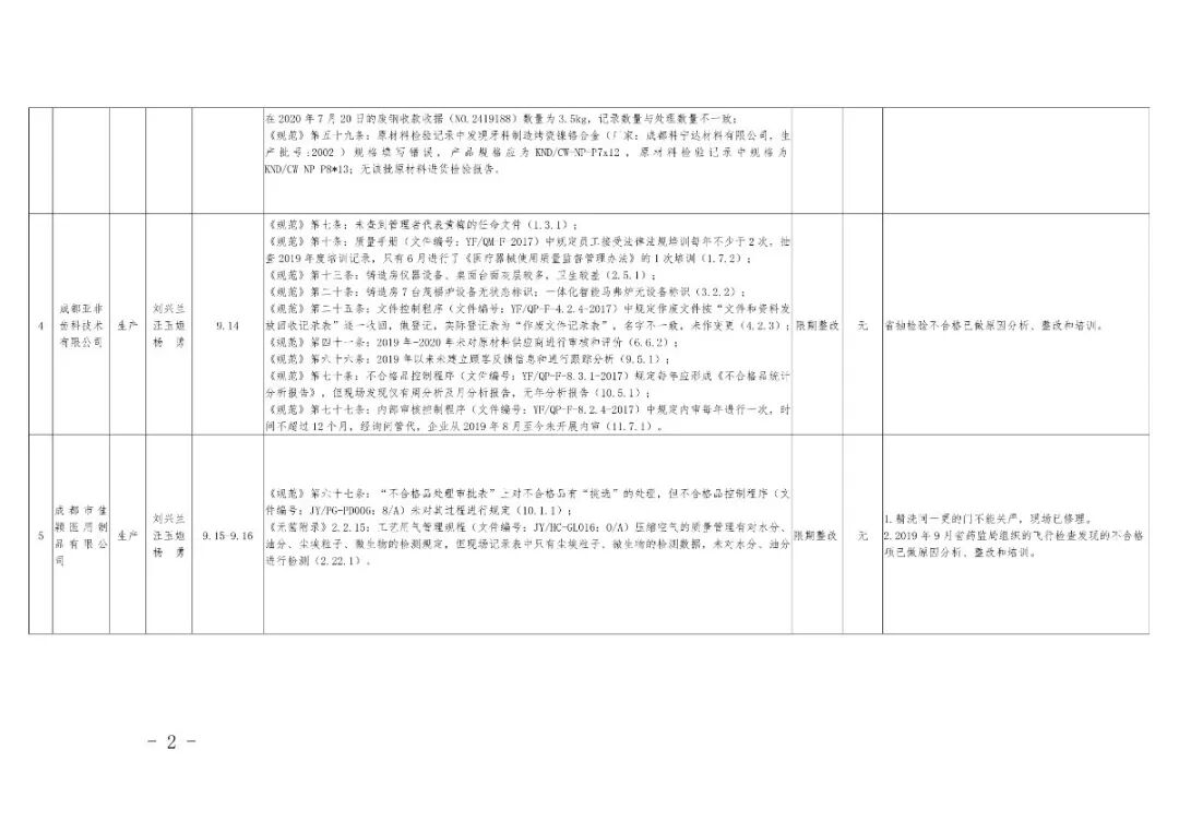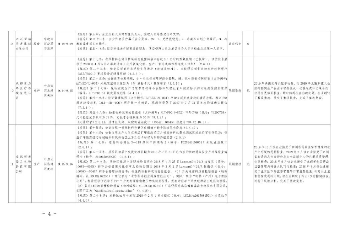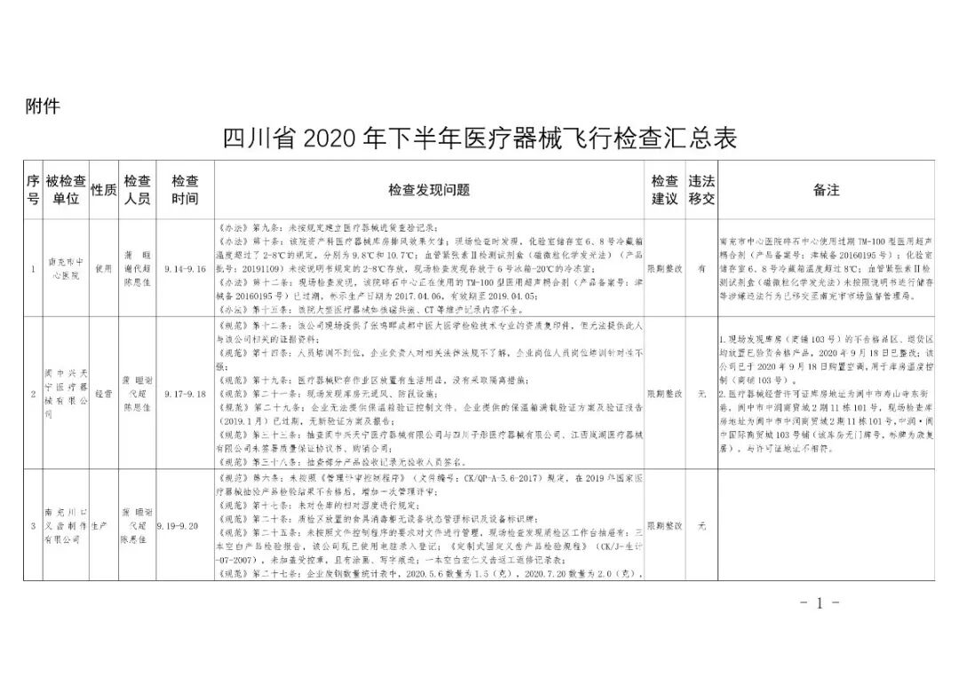 《公告》中,四川药监局对于2020年9月14日至9月20日组织开展了全省第2批医疗器械飞行检查工作结果进行了公示。