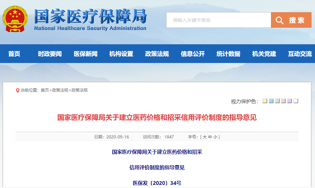 就在9月16日,国家医保局最新发布了《关于建立医药价格和招采信用评价制度的指导意见》(以下简称《意见》)。