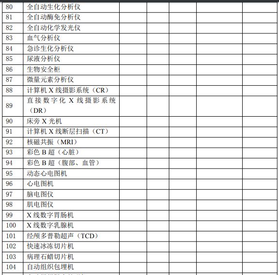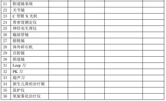县级医院设备配置标准
