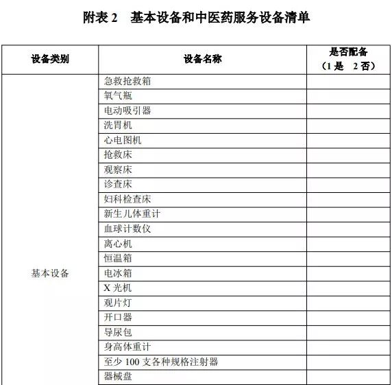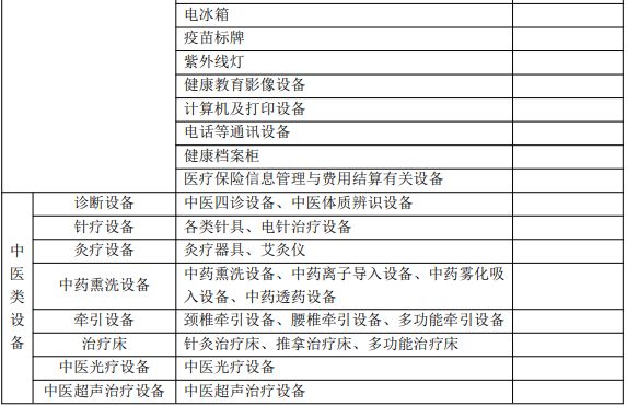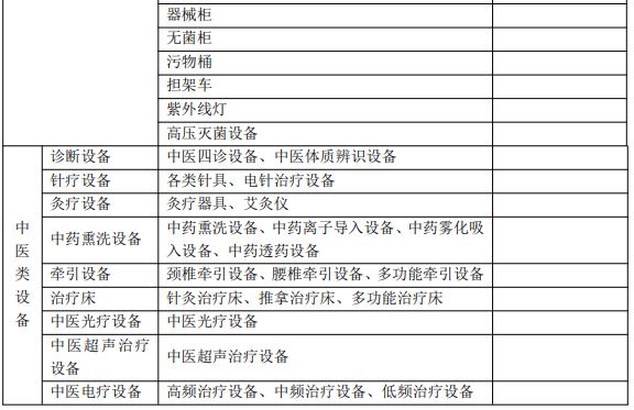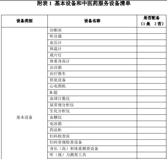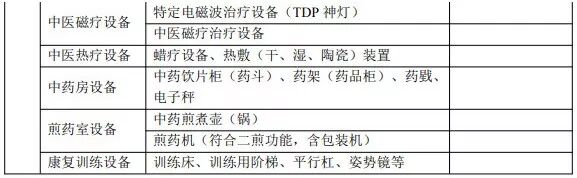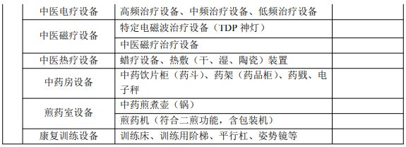 【C】参照《医疗机构基本标准(试行)》(卫医发〔1994〕第 30 号)要求配备相关设备,配备必要的中医药服务设备。配备“下表中基本设备和中医药服务设备清单”中的90%以上的基本设备,并配备6种以上中医诊疗设备和康复设备,则认为符合此指标要求。