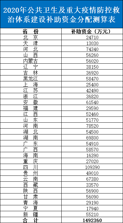 早在7月,国家发改委就下达了2020年卫生领域中央预算内投资。共安排了456.6亿元财政资金,以支持全国31个省(自治区、直辖市)和新疆生产建设兵团的公共卫生防控救治能力建设工作。