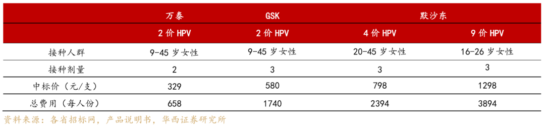 ▲中国市场 HPV 疫苗接种程序和价格比较