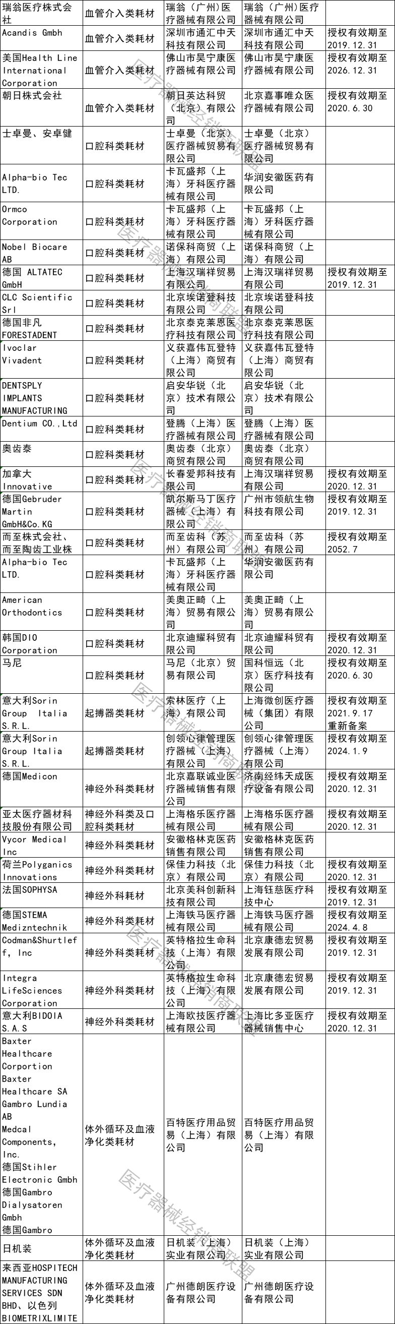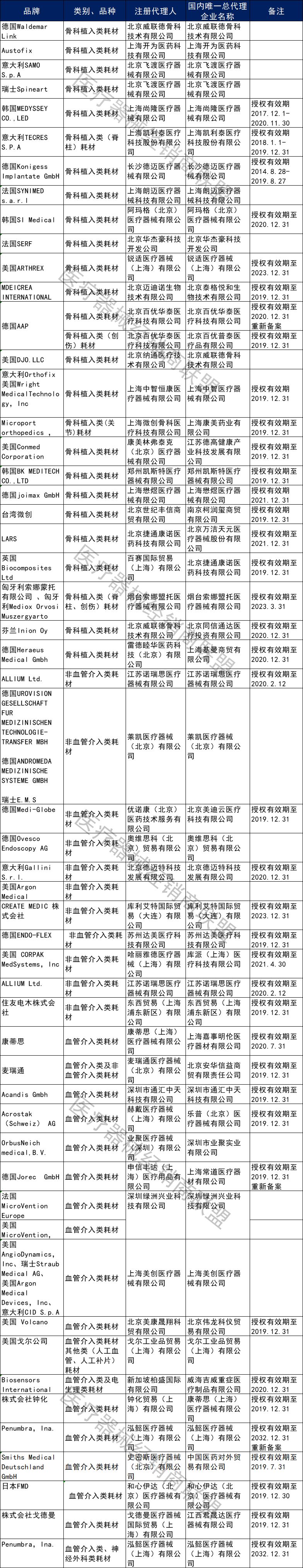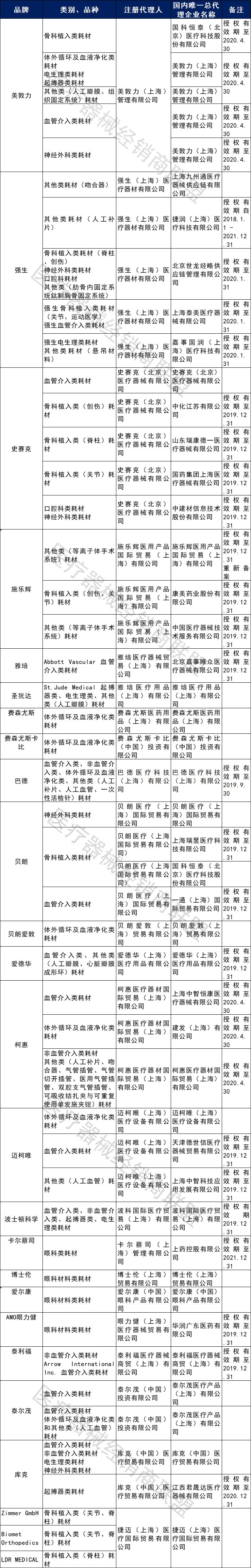 其中,涉及进口医疗器械品牌近150个,涉及骨科植入类、血管介入类、非血管介入类、电生理类、起搏器类、口腔类、眼科类、体外循环及血液净化类、其他类等十多类医疗器械产品,均公布了国内总代名单。