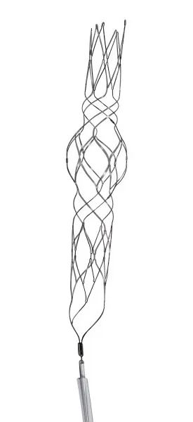 该产品同样是一款针对动脉瘤的支架,但是该产品的设计不同于以往的血管支架结构,而是采用了新颖的结构设计,分支采用的非全闭设计在限制血管瘤的同时,尽量避免了其他血管组织的安全。