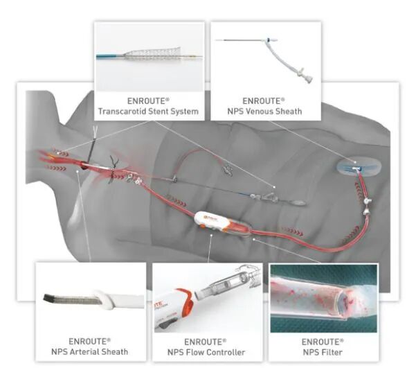 该术式由美国血管外科专家Enrique Criado教授(MidMichigan Health)和David Chang教授(O'Connor Hospital)共同发明并推广。施术中医生从病人的颈部做小切口介入,之后用途中神经保护系统产品接通动脉的血液流动,这实际上是逆转血液从大脑中流出,将血液向后吸出身体。接着通过收集任何松散斑块的筛网过滤血液。最后,血液通过病人的腿重新插入病人的身体。