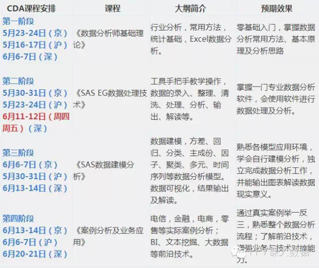 【CDA第十一期】北上深5-6月数据分析师培训时间安排