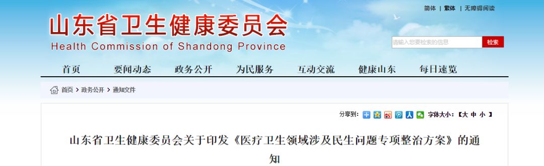 近日,山东省卫健委印发了《医疗卫生领域涉及民生问题专项整治方案》的通知(以下简称《通知》)。《通知》中明确了山东省将在全省范围内开展医疗卫生领域涉及民生问题的专项整治活动。
