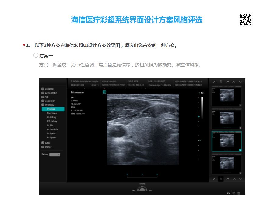 为了让产品更加适应一线操作人员的操作习惯,海信还特意为操作系统的设计方案发起过投票,可见海信医疗在这款超声产品上投注的期望。