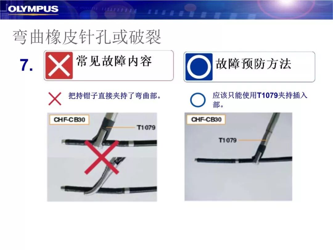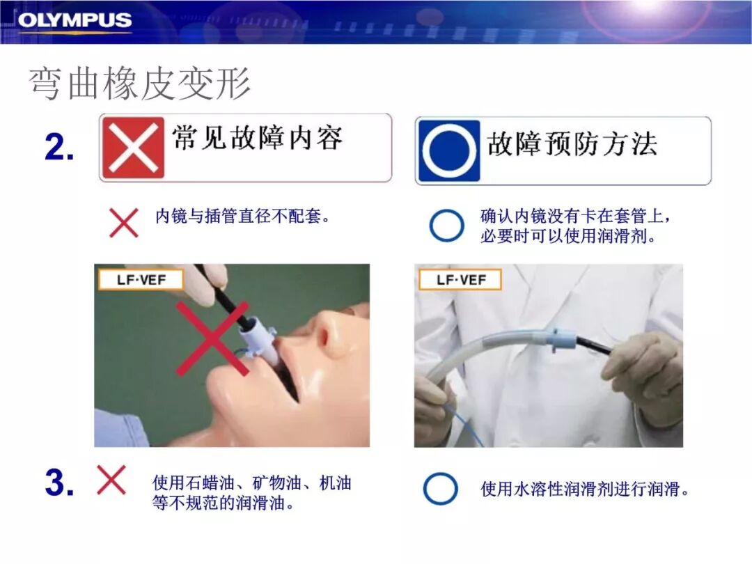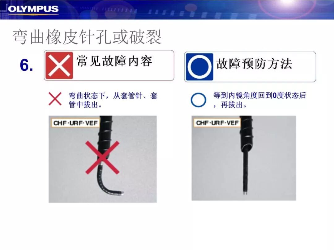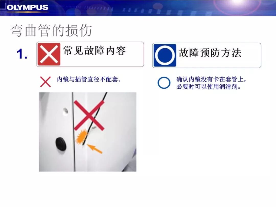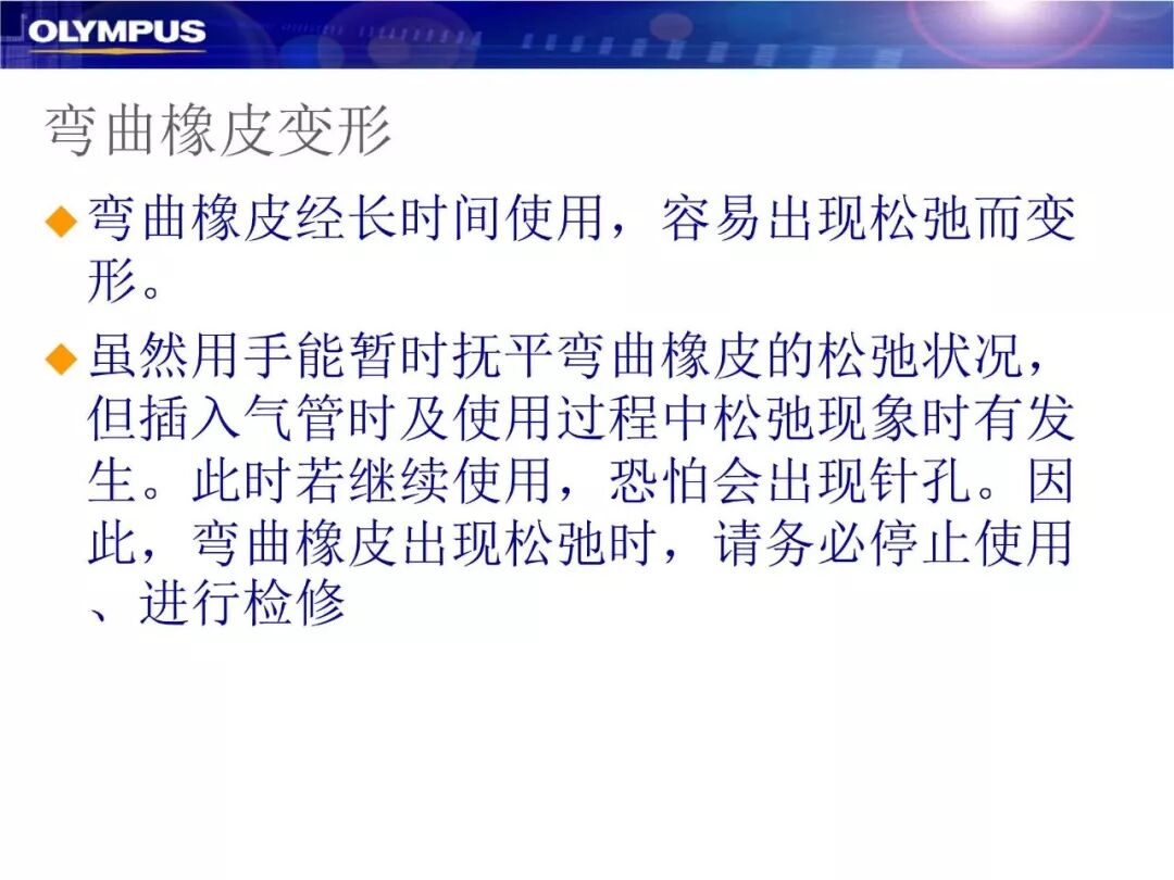 在内镜的使用、运输、清洗及储存过程中,请勿把内镜与其他器械一起放置,避免内镜与其他尖锐物品的接触造成损坏;当电子软镜测漏出现报警、或存在漏水漏气现象后,请停止使用并送修,防止液体在镜子内部对电子元器件腐蚀、造成更大的故障。