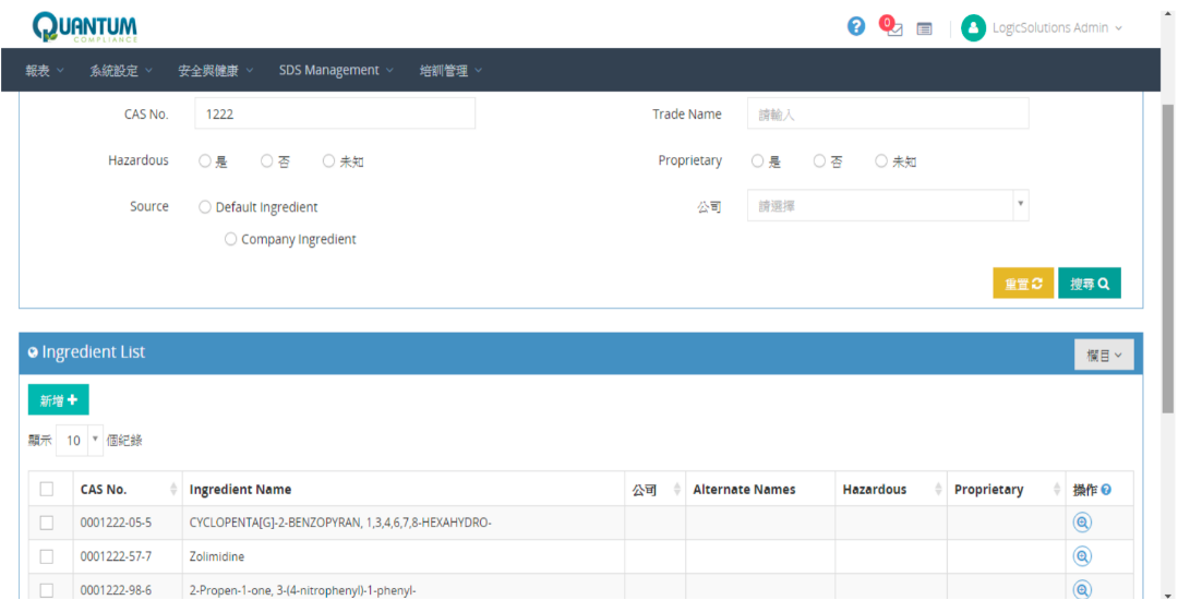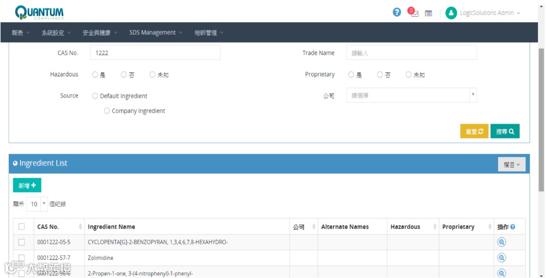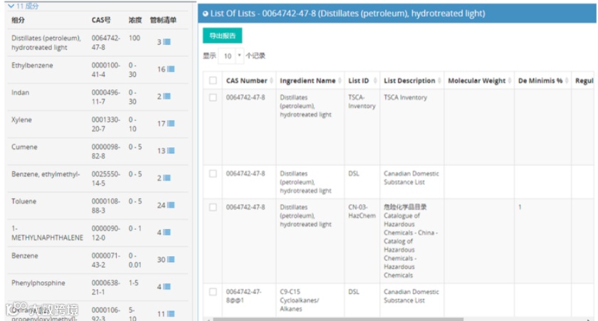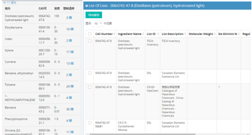 您可以做通过CAS NO. 成分名称、危害属性等信息在我们的软件系统中轻松查看成分信息详情。