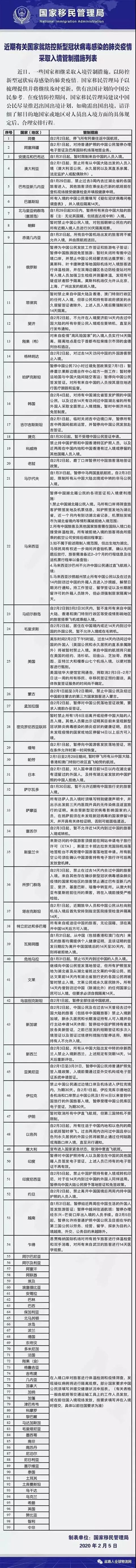 国家移民管理局更新了各国(地区)入境管制措施,共涉及99个国家: