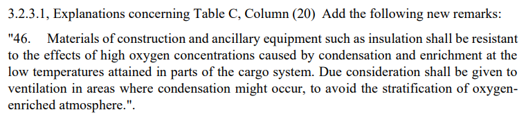1.修改术语和定义:为了提高文档的清晰度和可理解性,一些术语和定义被更新。例如,"pump-room"(泵室)被更准确地替换为"pump room"(泵房),以消除可能的歧义。此外,对于自主保护系统,原有的"deflagration safe vacuum valves"(防爆燃安全真空阀)描述被更新为"vacuum relief valves, pressure relief valves"(真空泄压阀、压力泄压阀),这反映了对这些系统功能和设计要求更深入的理解。