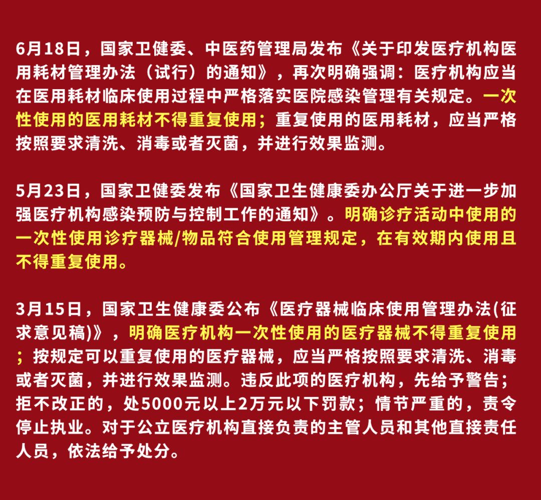 可见,国家医保局、药监局、卫健委等监管部门,对于一次性非植入高值医用耗材的复用问题,态度绝对是谨慎的。