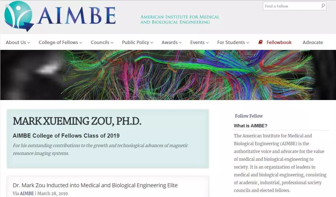 美国生物医学工程院(American Institute for Medical and Biological Engineering,AIMBE)成立于1991年,是国际医学与生物工程领域著名的非营利学术组织,汇聚了世界医学与生物工程领域最杰出(Top 2%)的学者,其中包括2名诺贝尔奖得主,17位美国总统奖得主,以及261位美国科学院、工程院、医学院院士。他们对生物医学仪器、医疗器械、疾病治疗以及相关公共卫生政策的制定产生了重要的影响。