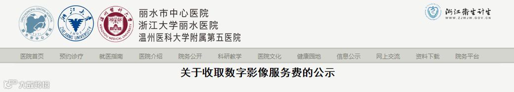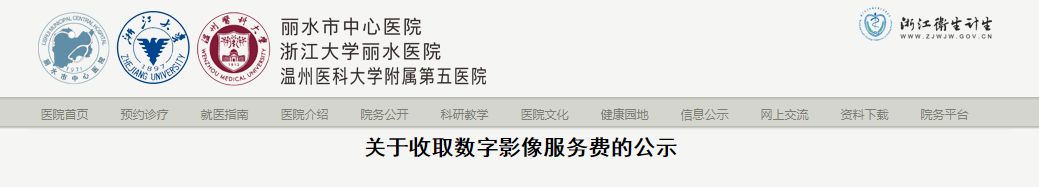 4月5日,浙江温州医科大学第五医院发布《关于收取数字影像服务费的公示》。公示明确这家大三甲医院定于4月15日开始推行数字影像服务,收费标准为每次20元。