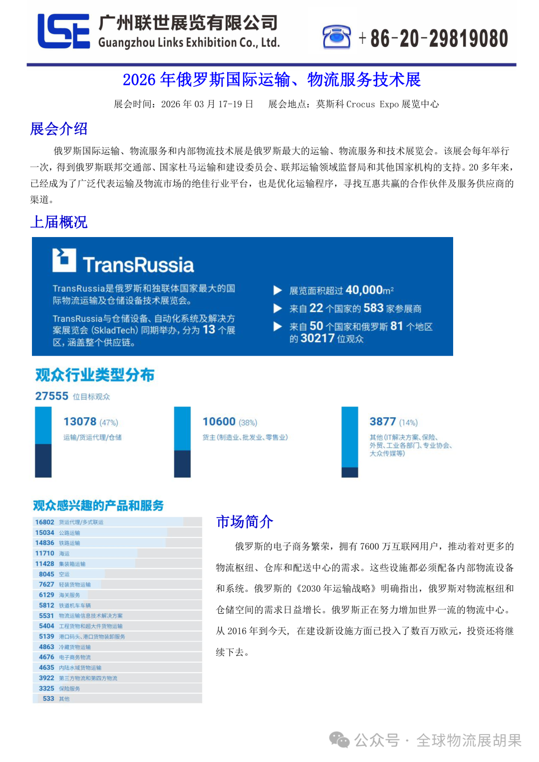 广州联世展览是一家专业的展览公司,有着丰富的海外组展经验。我司作为国内唯一一家专业代理全球物流展的组团机构,跟国外20多个国家主办方都建立了良好的合作关系,为国内90%的生产出口企业提供了国外物流展会的信息,已跟世界各国物流展主办建立良好的合作关系。