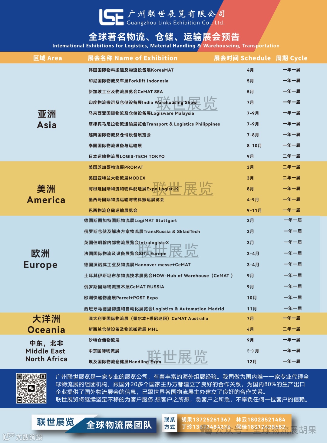 广州联世展览是一家专业的展览公司,有着丰富的海外组展经验。我司作为国内唯一一家专业代理全球物流展的组团机构,跟国外20多个国家主办方都建立了良好的合作关系,为国内90%的生产出口企业提供了国外物流展会的信息,已跟世界各国物流展主办建立良好的合作关系。