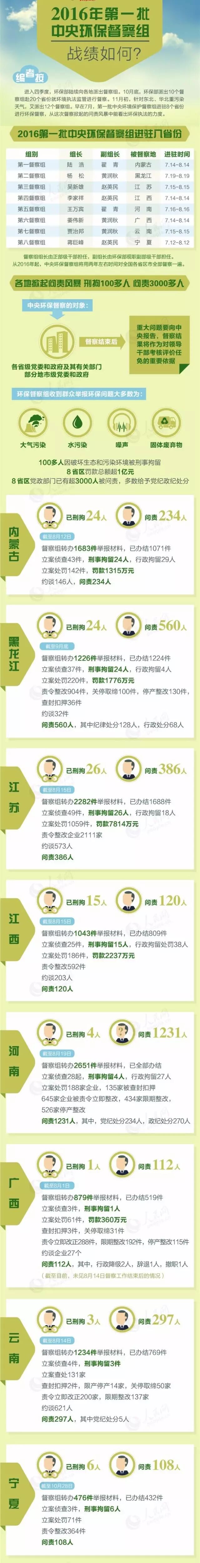 (来源:法制日报、人民网综合整理报道;原标题分别为:八个督察组陆续向地方反馈意见、图解:2016年第一批中央环保督察组战绩如何?)