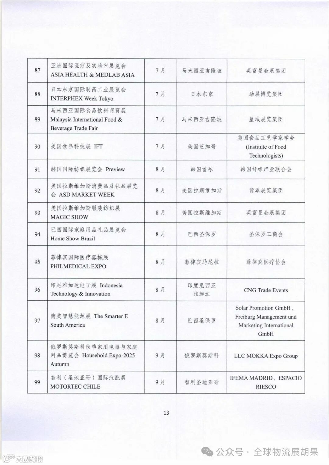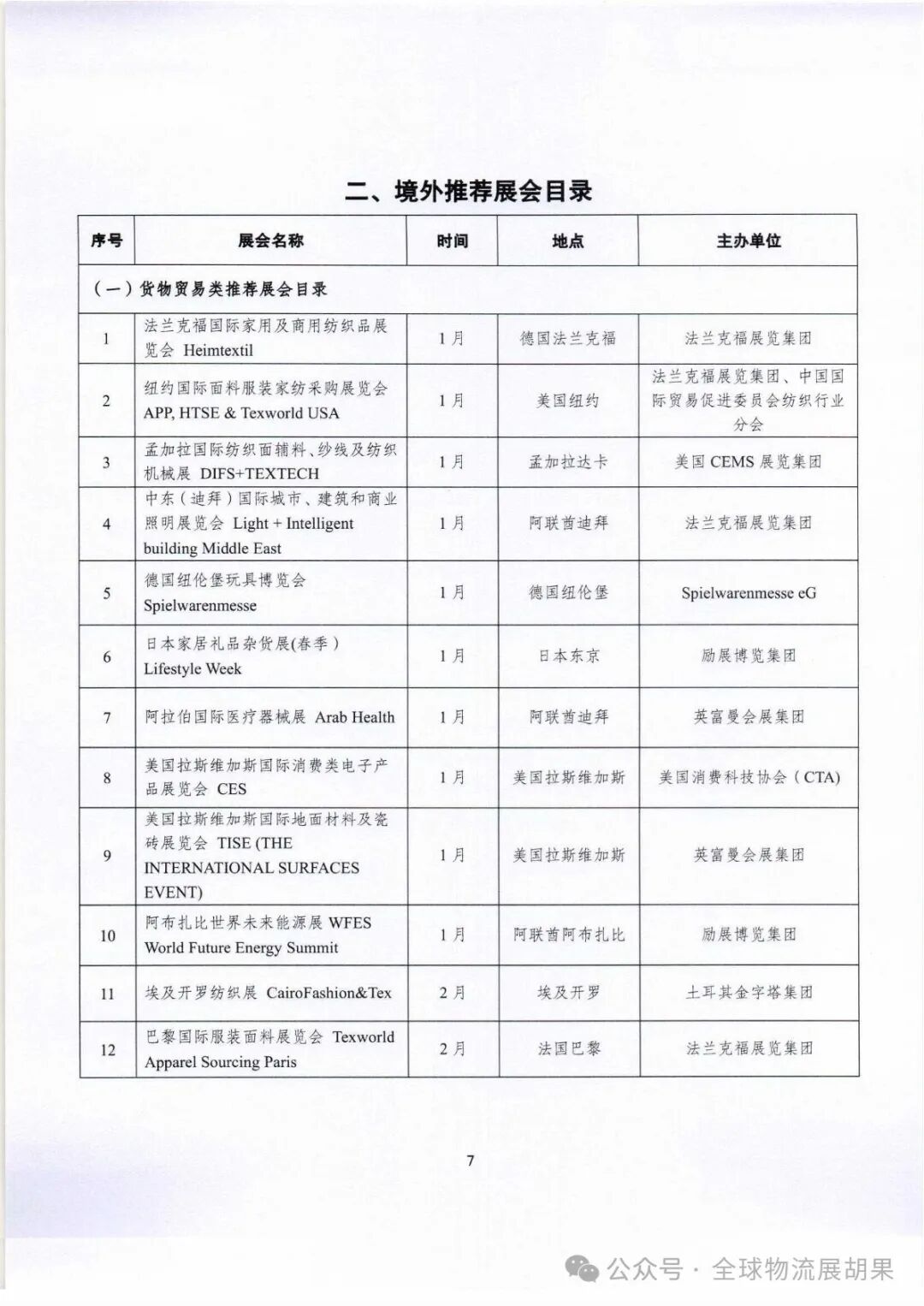 全球各著名物流、仓储、运输展会
