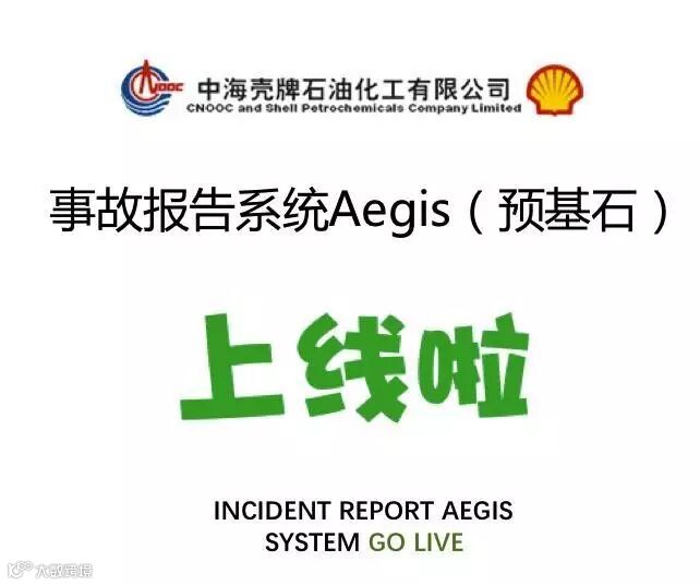 2017年4月17日,中海壳牌石油化工有限公司的“事故报告系统Aegis(预基石)系统正式上线。该系统是《中海壳牌安全信息管理系统》中第一个上线的子系统。《中海壳牌安全信息管理系统》是以匡腾Q-EHS信息化管理软件为基础架构,结合中海壳牌的实际业务需求,由匡腾EHS信息化管理软件公司研发而成的。