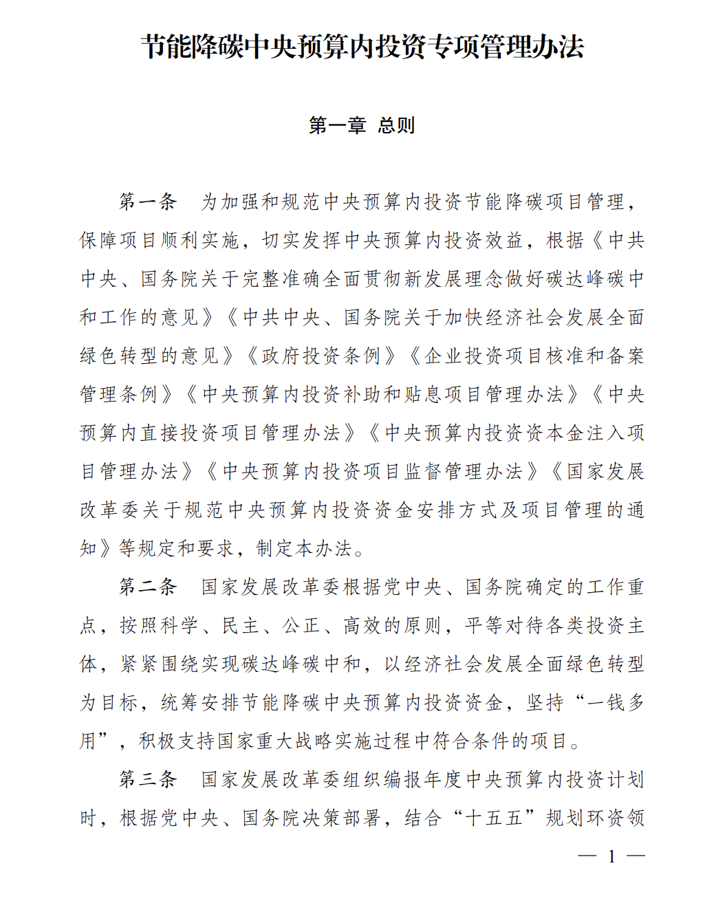 为加强和规范节能降碳专项中央预算内投资管理,高质量推进项目建设,提高资金使用效益,我们制定了《节能降碳中央预算内投资专项管理办法》,现予印发,请遵照执行。
