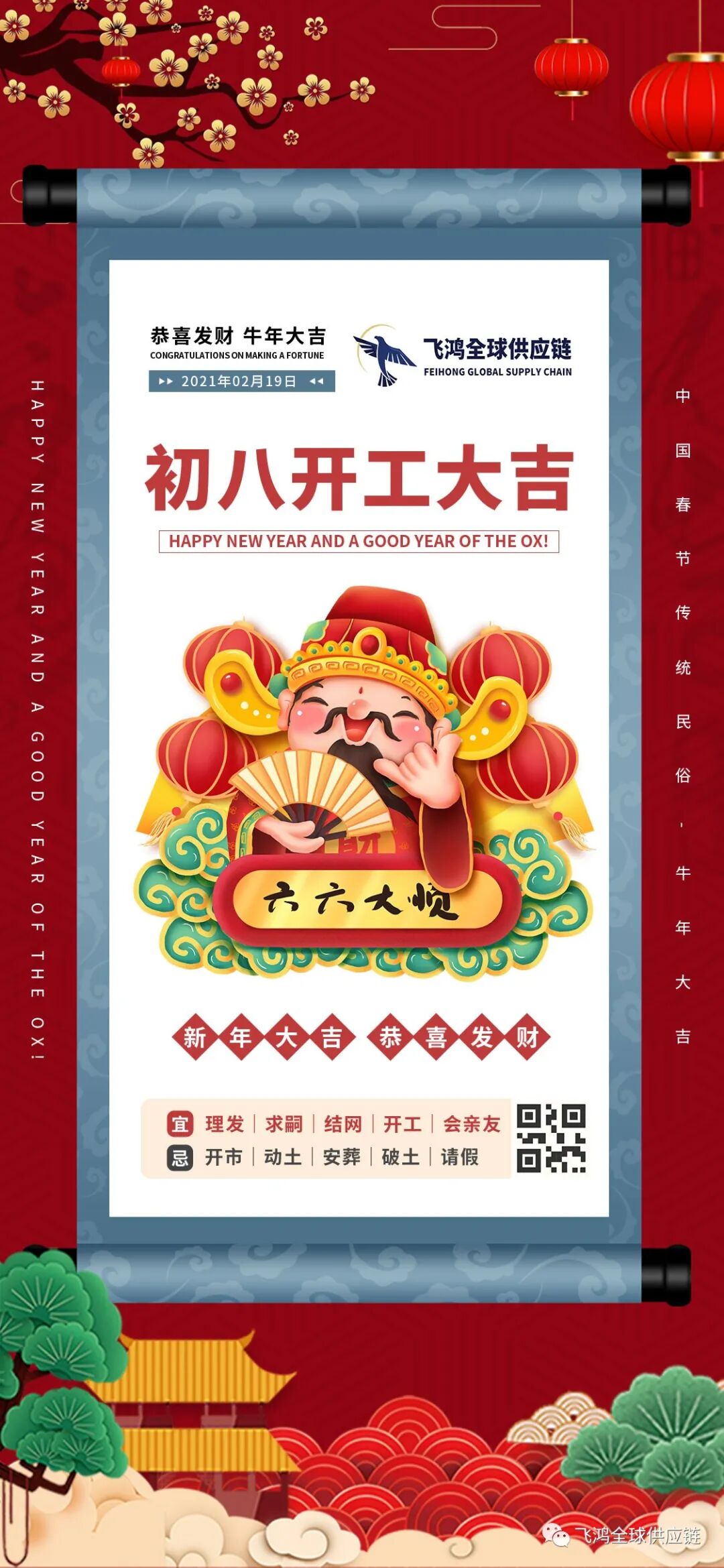 导读:今儿个飞鸿在这祝您新老顾客们:在新的一年里,牛气冲天,牛年大吉!希望大家2021年,第一波寄件开心!