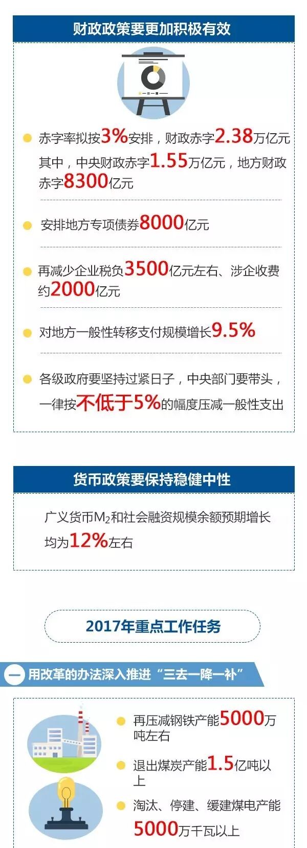 一要加快解决燃煤污染问题。全面实施散煤综合治理,推进北方地区冬季清洁取暖,完成以电代煤、以气代煤300万户以上,全部淘汰地级以上城市建成区燃煤小锅炉。加大燃煤电厂超低排放和节能改造力度,东中部地区要分别于今明两年完成,西部地区于2020年完成。抓紧解决机制和技术问题,优先保障可再生能源发电上网,有效缓解弃水、弃风、弃光状况。加快秸秆资源化利用。