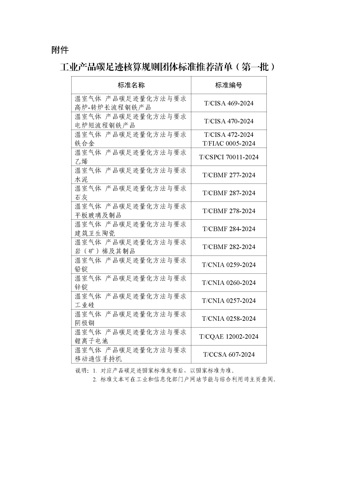 附件:工业产品碳足迹核算规则团体标准推荐清单(第一批)